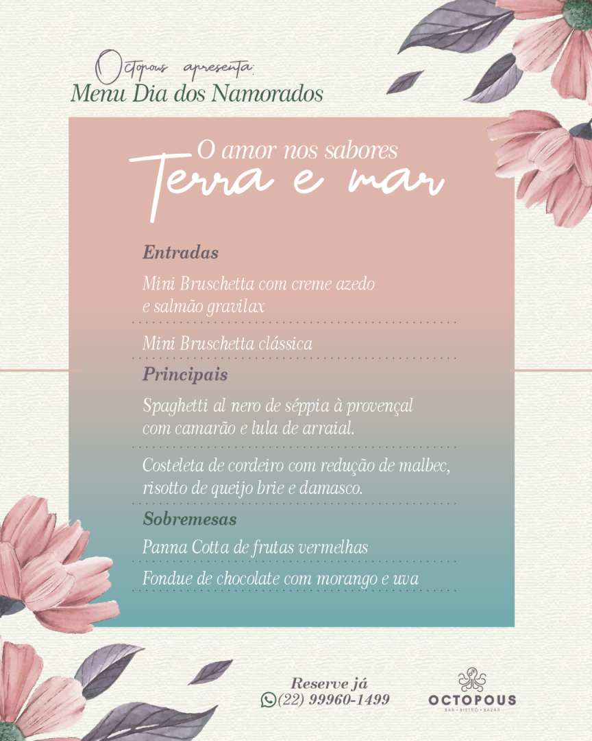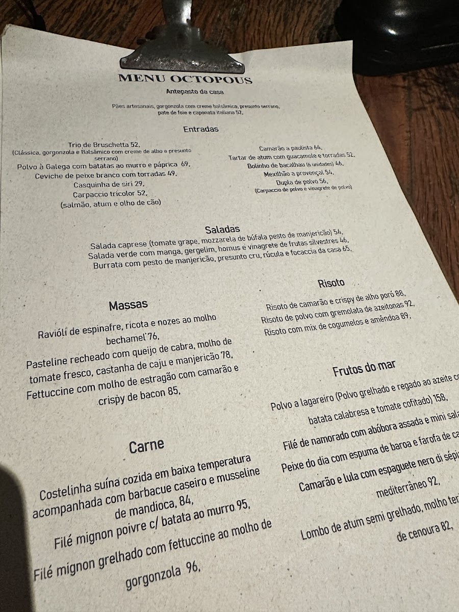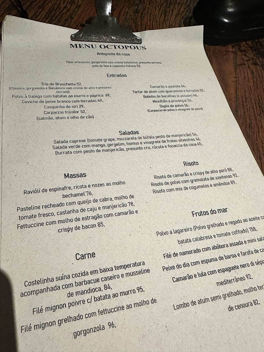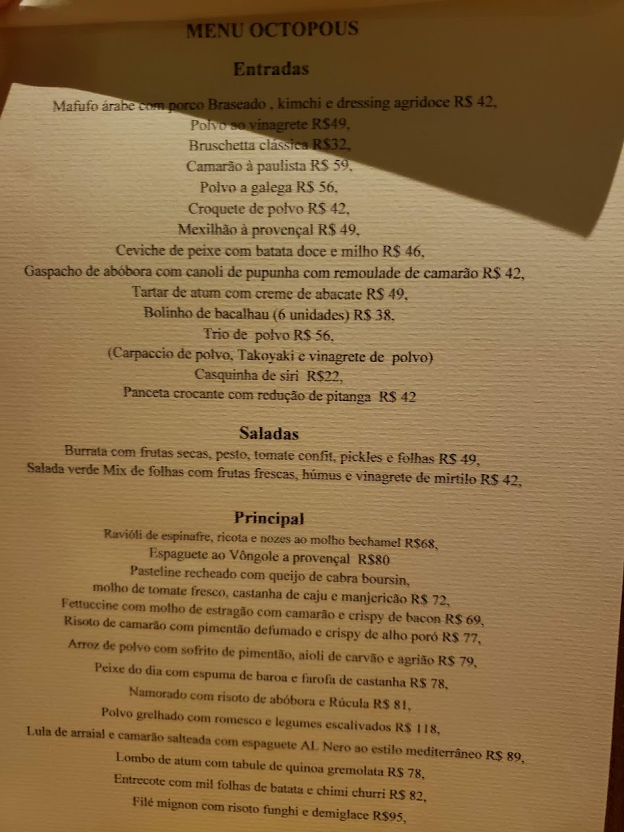 The menu at Octopous Bar Bistrô Bazar offers a harmonious blend of flavors that cater to both traditional and adventurous palates. The Massa stands out as a perfectly cooked pasta dish, rich in texture and layered with sauces that highlight fresh, high-quality ingredients. Complementing the food, the restaurant’s selection of Wine provides an elegant accompaniment, with options that pair seamlessly with both seafood and meat dishes. For starters, the Ceviche Peruano is a vibrant, refreshing choice, balancing citrusy brightness with tender seafood in a way that awakens the palate. The dessert offerings are equally compelling, particularly the Tiramissú, which delivers a delicate sweetness and creamy consistency that rounds off the meal beautifully. For those seeking an interactive dining experience, the Fondue provides both a flavorful and social element, encouraging shared enjoyment while maintaining exquisite taste. Each dish reflects thoughtful preparation and an eye for detail, making the menu at Octopous Bar Bistrô Bazar a memorable journey through diverse culinary experiences.